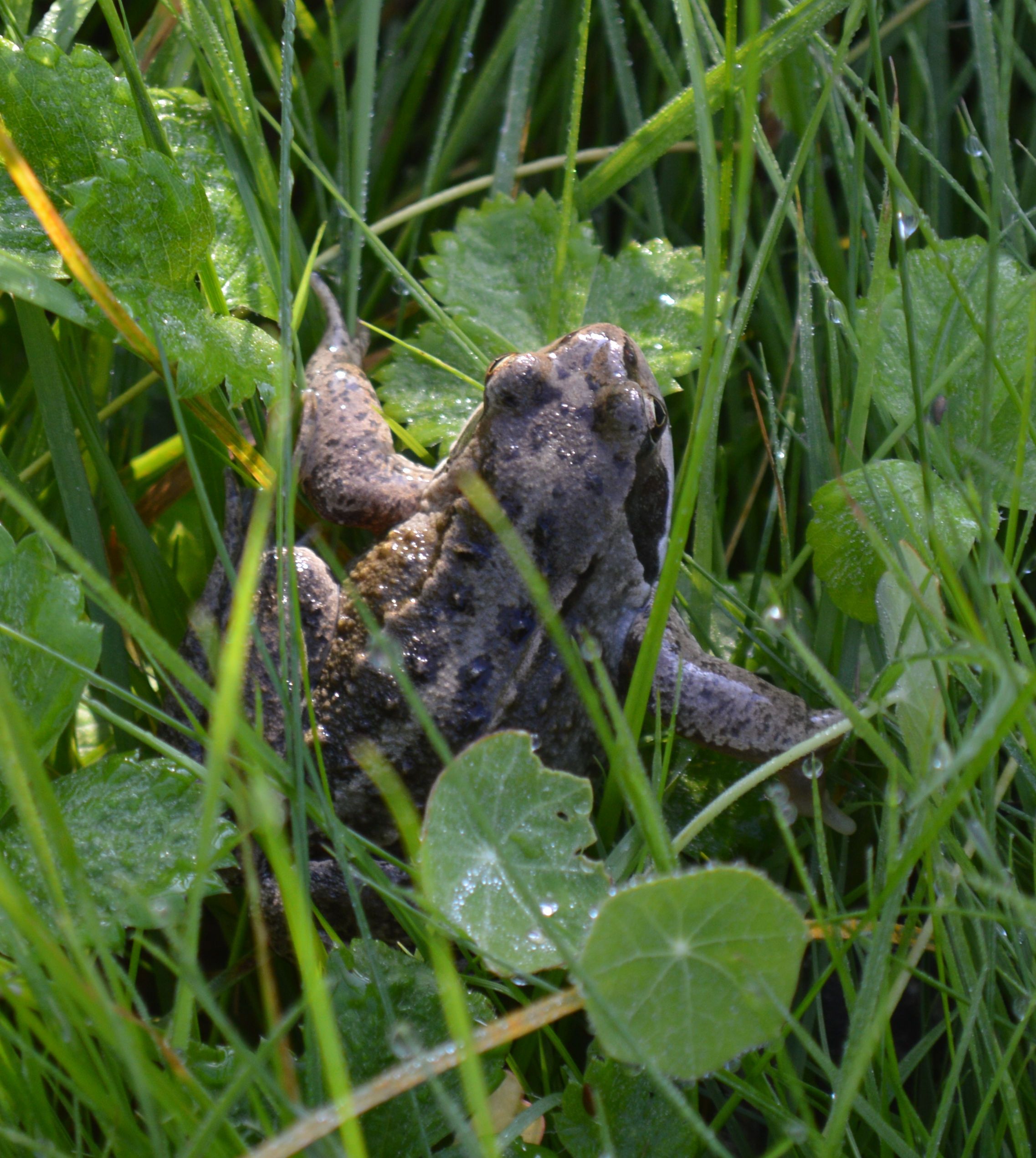 While digging up the worms for the photo, I disturbed another toad who’d been minding his own business amongst the lush undergrowth growing where the veg should have been. Thankfully the garden fork missed him or we’d be getting a reputation in the amphibian world as toad harassers after last month’s incident with one of his comrades. Hopefully he forgave my intrusion when he found the pile of freshly dug worms – being bug of the month doesn’t save you from toady termination.