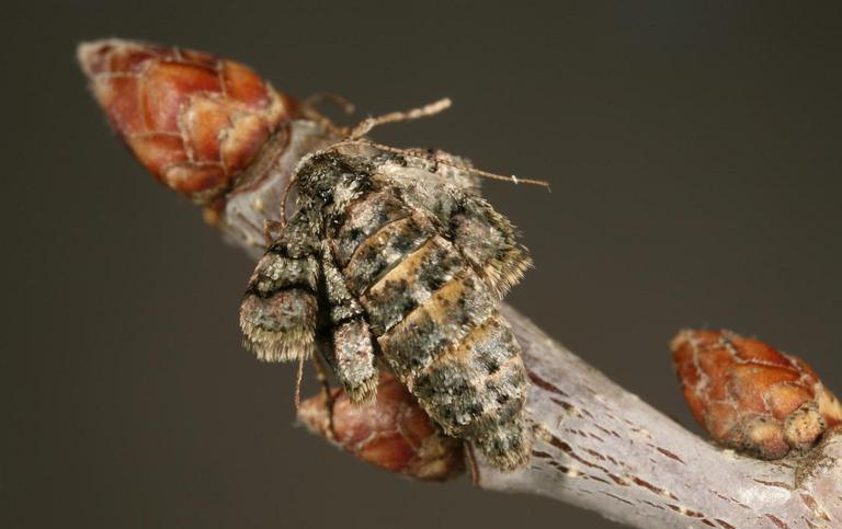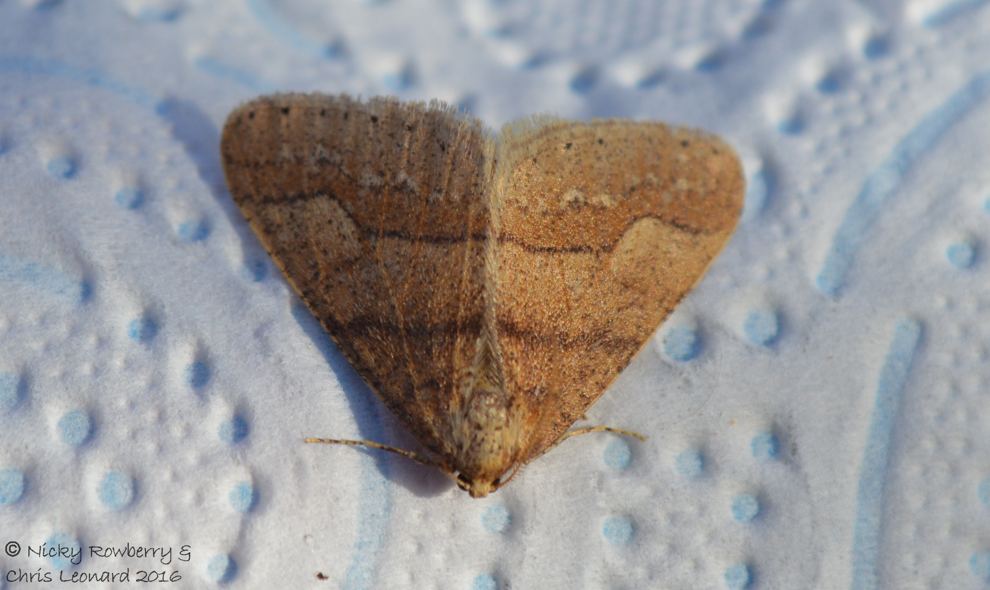The second intrepid February moth was a male Dotted Border. I’m not usually so confident at sexing my moths, but with this one it is easy, as the female of the species has got a really duff deal. The Dotted Border is one of the relatively few British species where the female is flightless – they have only stumpy vestigial wings. This seems wholly unfair to me – surely the great joy of being a moth (on the slightly romantic assumption that moths can experience great joy!) is being able to fly! The poor down-trodden females just have to sit and wait for the Mr Dotted Border to come and visit. The moth on the left is my lucky male (again apologies for lack of aesthetic photo, he blew away before I could get better) and the one on the right is the female. This photo comes courtesy of the Wikimedia Commons website (so free to copy here), as I’ve yet to find a female in the garden here.