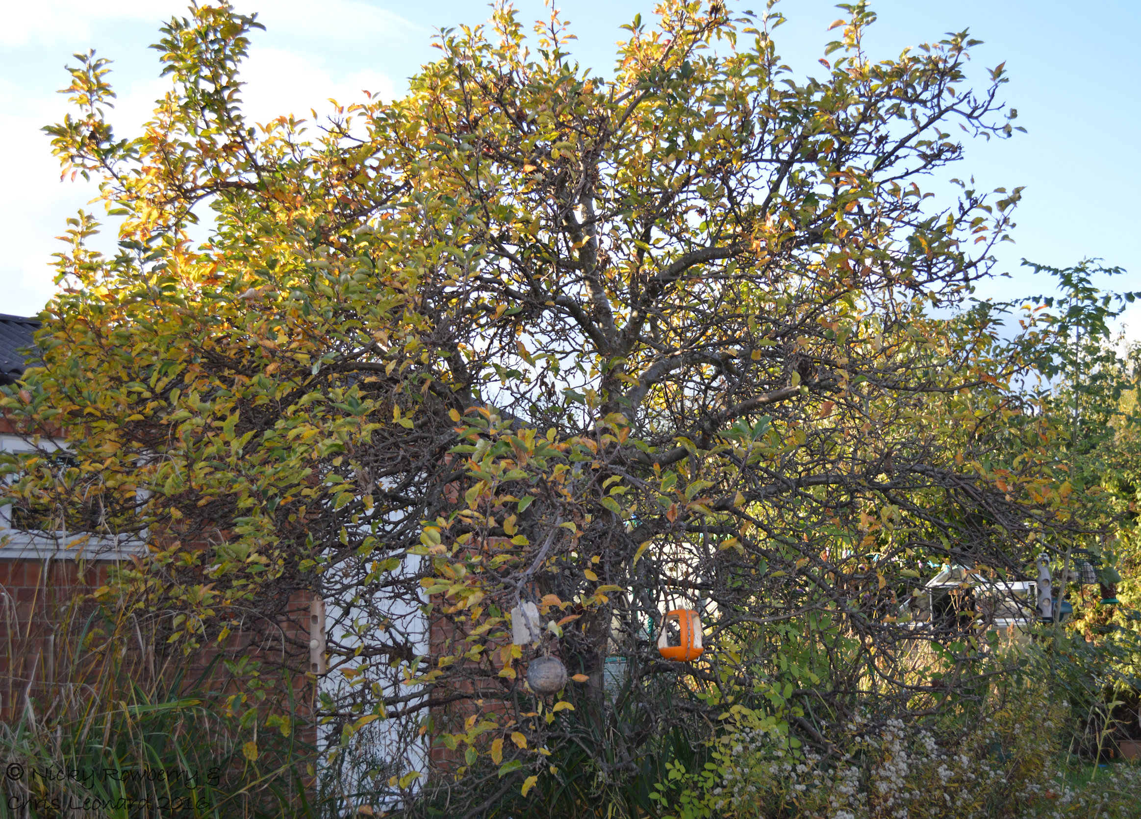 We always end up with far too many apples for our own use, but we have a friend who makes cider, so he comes and clears the tree for us. Not only do the apples get put to good use, but it saves us having to pick up loads of rotting ones off the grass. So by September the apples were all gone and just a few of the leaves were starting to turn yellow.