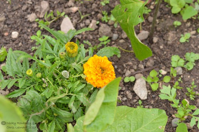 We’re also trying out companion planting to distract the pests, so we’ve got marigolds amongst the runner beans, mint amongst the carrots and nasturtiums all over the place!