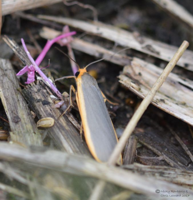 There was one final mothy visitor – our friend spotted movement in the bushes this morning and found a Common Footman.
