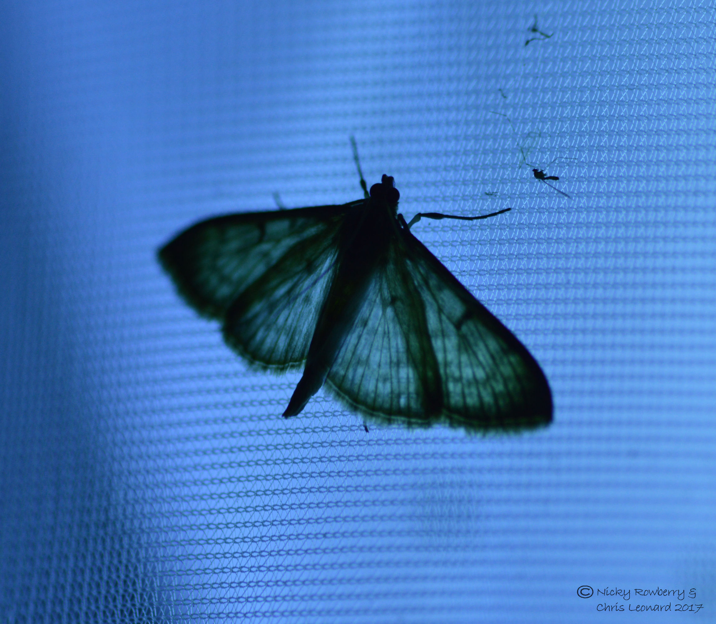 My first Mother of Pearl of the year sat on the outside of the trap but didn’t go in – hence the shadowy photo lit up by the blue bulb from the moth trap.