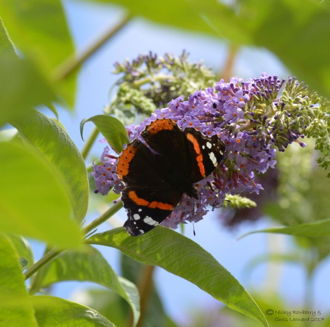 Then the first Red Admiral we’ve had for ages flew in and out, stopping to feed on the buddleia for a bit.