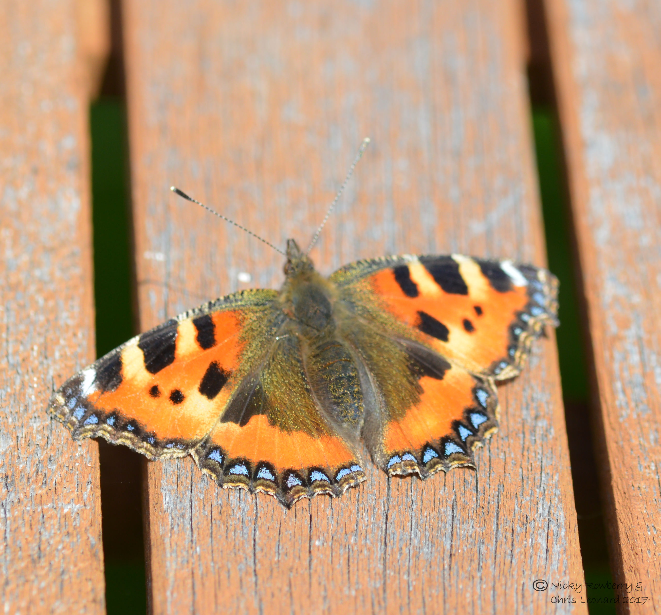 We also saw Large Whites, one Small White and a fleeting Comma. Two Small Tortoiseshells completed the day’s sightings. They fed on the buddleia (too high up for photos), the red valerian (waving about in the wind too much for decent photos) and thankfully one settled on the stationary table for an easy photo.