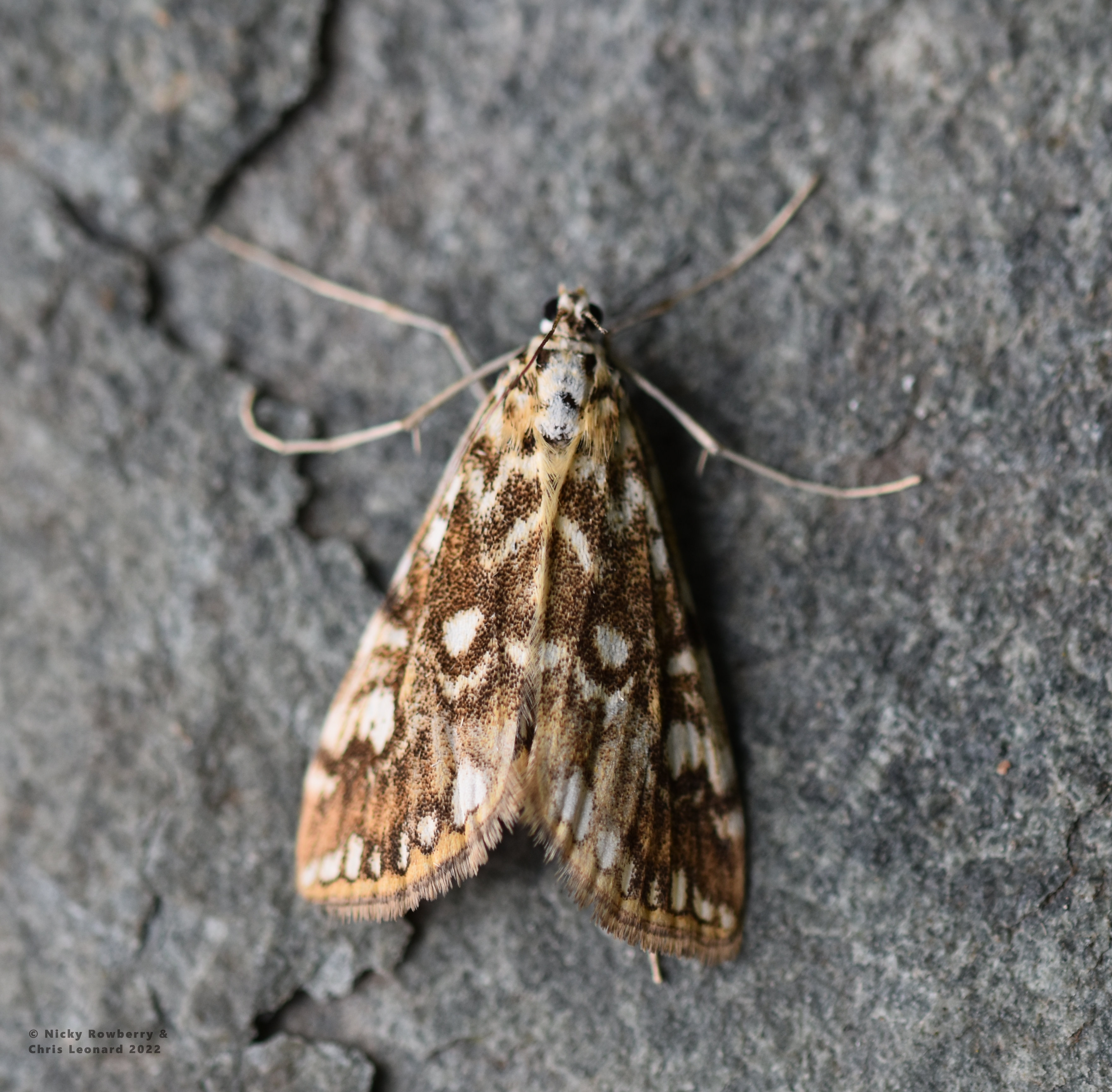 At the other end of the size spectrum, there were some lovely micro moths, including this Pearl Grass-veneer – a species I’d been hoping to see for a while.