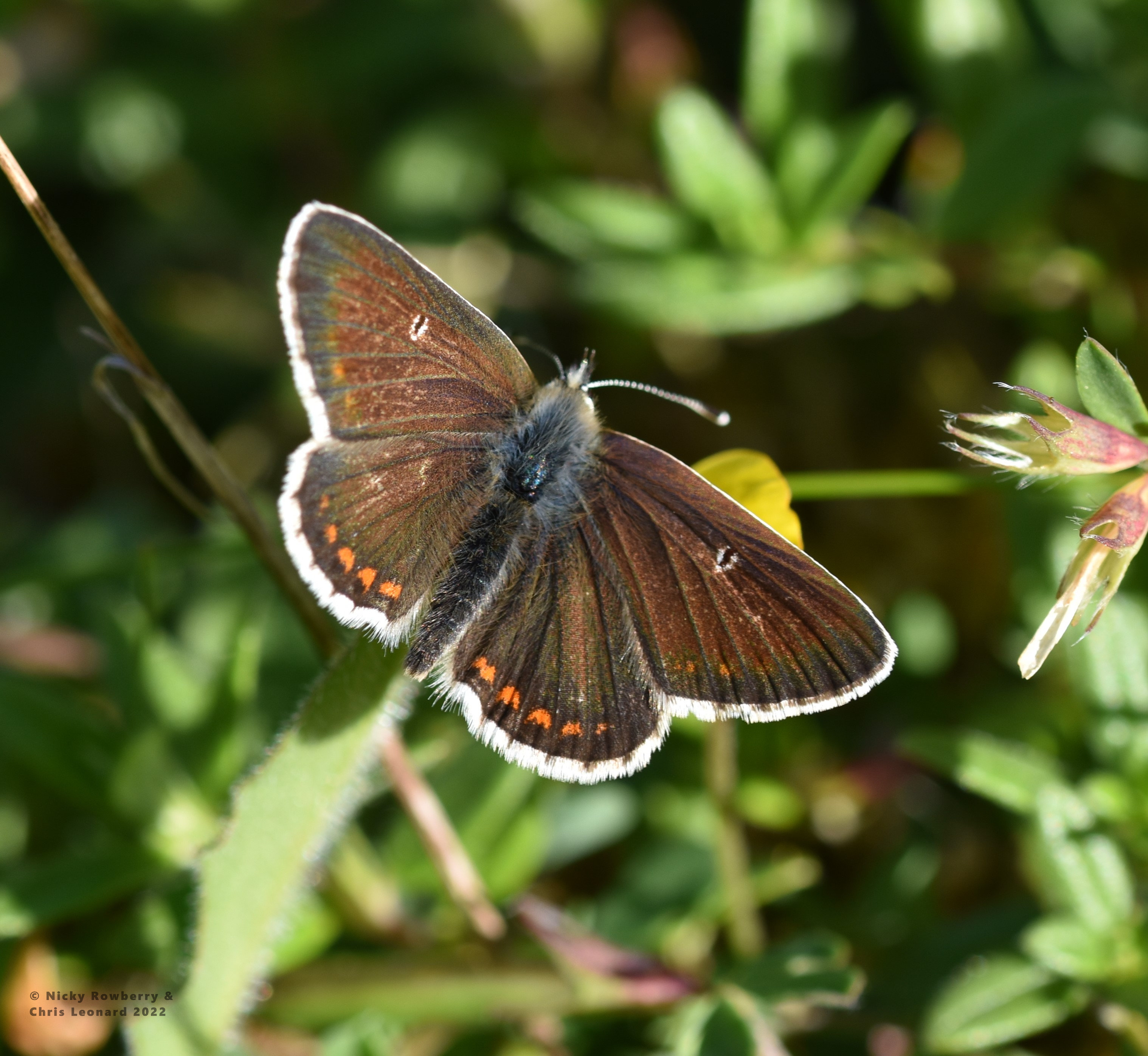 An hour or so of chasing butterflies madly around in the sunshine and I managed a few more respectable shots. On the upperside of the wings you can see the dark dot with the white outline which marks it out as a Northern Brown Argus (the dot and of course the location this far north).