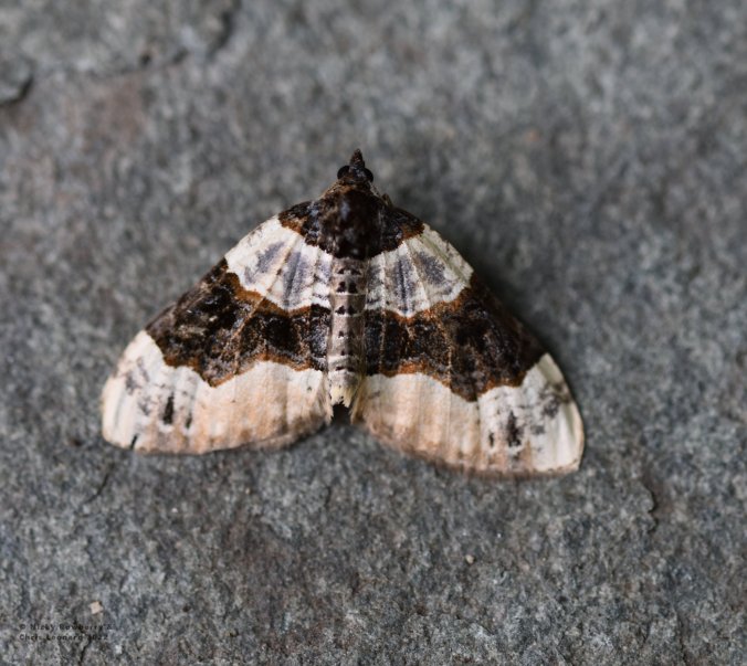 The rest of the moths in the trap were ones I had seen before, although in different proportions – lots more White Ermines than I ever get at home for instance. The Brown China Mark (below) was perhaps not surprising, given that their caterpillars are aquatic and we had a lake at the bottom of the garden at the holiday cottage.