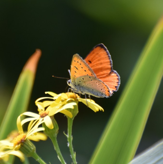My quest to see all 58 species of butterflies in the UK seems to have stalled somewhat, but I’ve still had a really good summer for butterflies this year, both at home and out and about. Best and most surprising of all was getting to see some Large Copper butterflies less than 40 miles from home. Given that the Large Copper is actually considered extinct in the UK and has been so since the 1850s, it’s not a butterfly I ever imagined seeing. But some bright spark had chosen to release them (possibly as caterpillars) at the brilliantly named Bumble Hole Nature Reserve in Dudley.