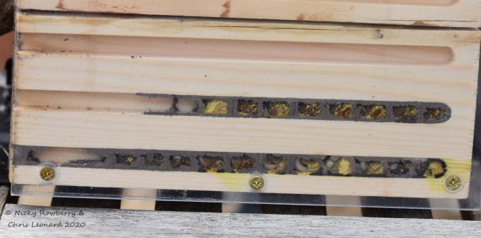 The new bee hotels provided lots of interest and again we added 2 species to our garden count (Willughby’s Leafcutter and a Sharp-tailed Bee). Being able to watch both Red Mason & Leafcutter bees build their nests in the tubes was really fascinating.