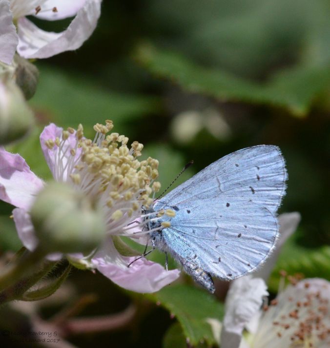I’ve had a few days out and about doing some not-strictly wildlife things, but it was out in lovely countryside so I reckon that counts. In August last year my sister and I went whinberry picking for the first time since we were children. Whinberries (or Wimberries, Bilberries, or Blaeberries, depending on where you’re from) were our Dad’s favourite and grow wild in the Shropshire hills. We were a bit late in the season, so only managed to gather enough for a very small pie, but it was well worth it – the taste brought back many happy childhood memories and we certainly got to see a lot of the wilds of Shropshire while we hunted for them.