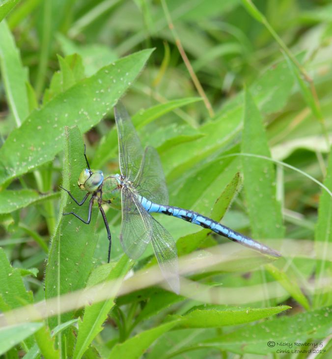 Damselflies, demoiselles and dragonflies were all fairly common around the pond. I think we saw both Beautiful and Banded demoiselles, azure and large red damselflies and these two splendid dragonflies. The top one is a female darter (either common or ruddy) and the blue one at the bottom is a male Emperor dragonfly.