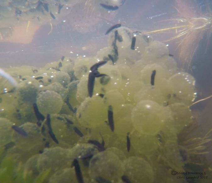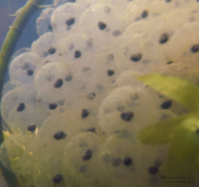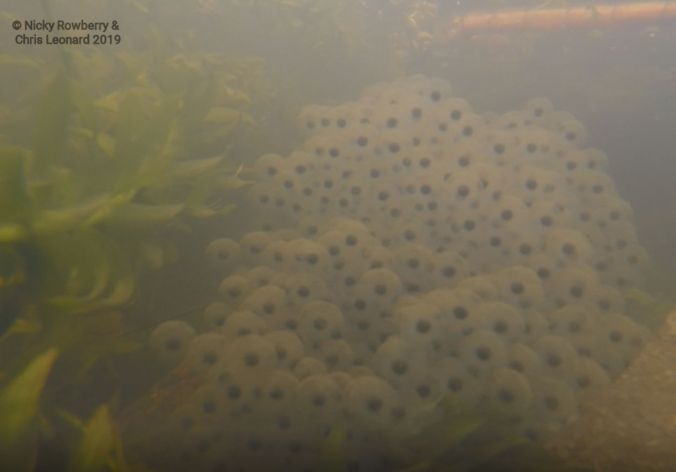 The throng of frogs produces a lot of frog spawn. This is just part of it from one side of the pond this year. They tend to lay the spawn in the shallows.