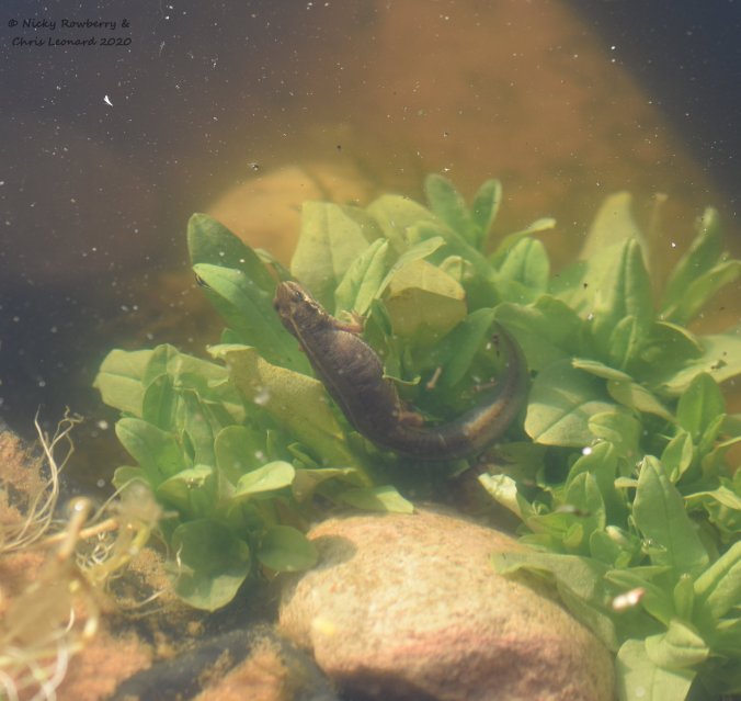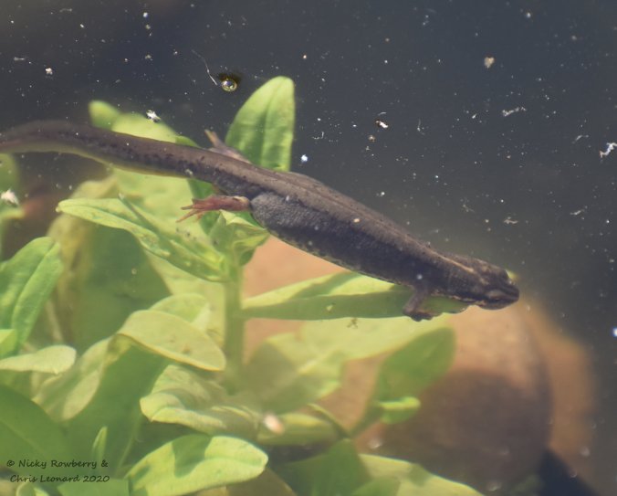 The smooth newts have probably been enjoying the glut of frog spawn and tadpoles. I saw several of them popping up amongst what to them must be a buffet of frog spawn. Fortunately the ratio of tadpoles to newts is big enough that I don’t think they’re doing any harm to the frog population and after all, a newt’s got to eat!
