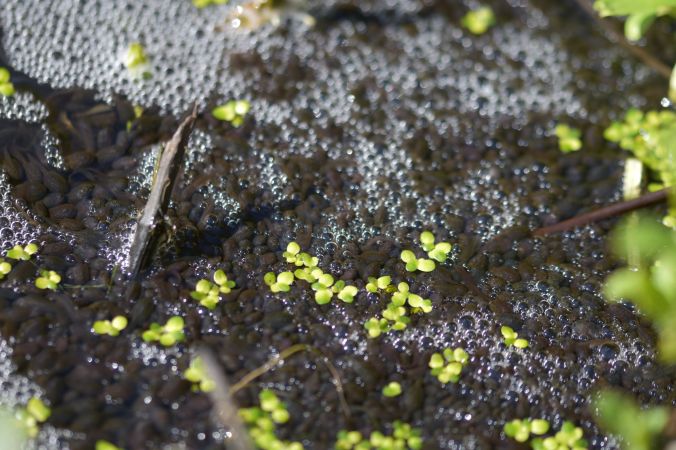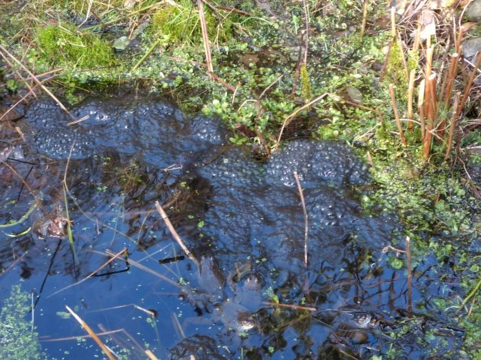 The throng of frogs produces a lot of frog spawn. This is just part of it from one side of the pond this year. They tend to lay the spawn in the shallows.