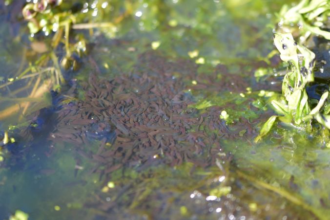 And then of course come the tadpoles. There must be thousands of them this year, all wriggling in the shallows of the pond, I guess where the water is a bit warmer. Such is the activity that the water actually froths up. Their tiny gills are clearly visible at this stage.