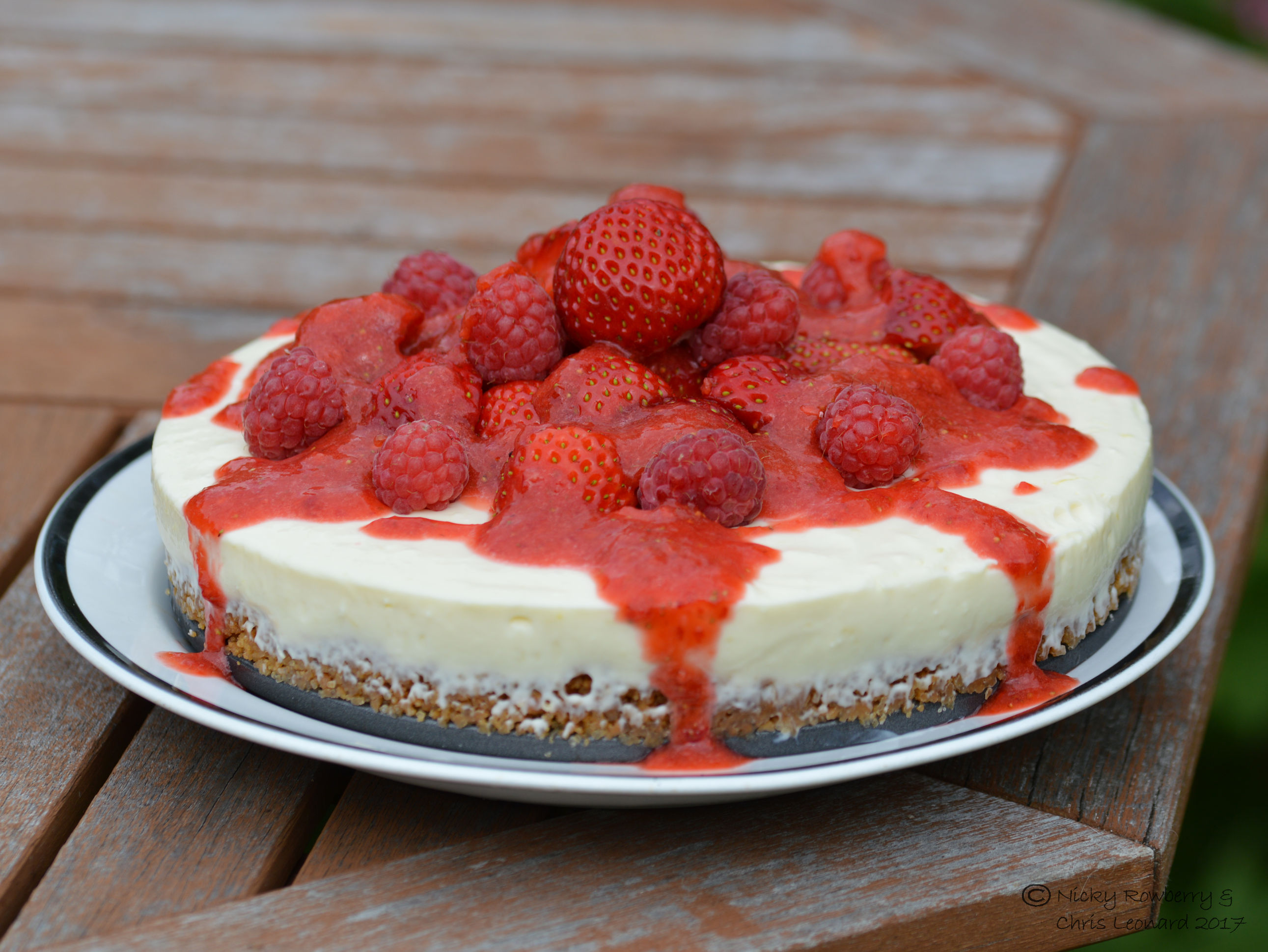 Feeling like I was on a roll, I checked the fridge to see what else needed using up. We’ve got a glut of strawberries & raspberries from the allotment at the moment and there’s only so many bowls of them you can eat just straight. So in a rare fit of baking enthusiasm (although this was actually a no-bake recipe) I made a strawberry cheesecake. There’s something really satisfying about making something with fruit you’ve not only picked but grown yourself! Although by the end of the summer when we’ve had strawberries every night, I might not be quite so enthusiastic about them!
