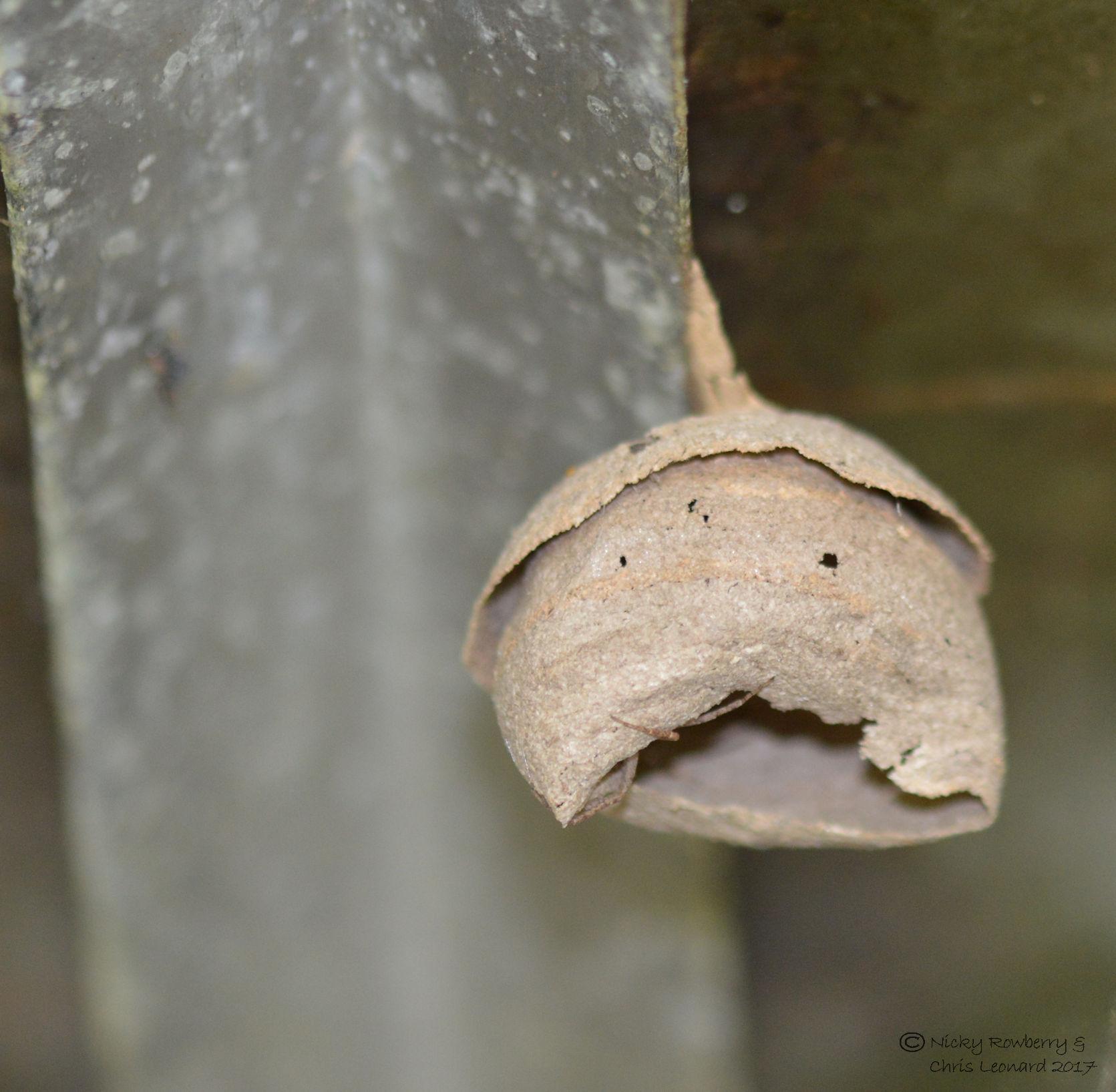 Back from the lottie and into the greenhouse to water the motley assortment of plants I’ve got in there. I spotted this wasp’s nest that has clearly been there some time, but for some reason I’ve never noticed it before.