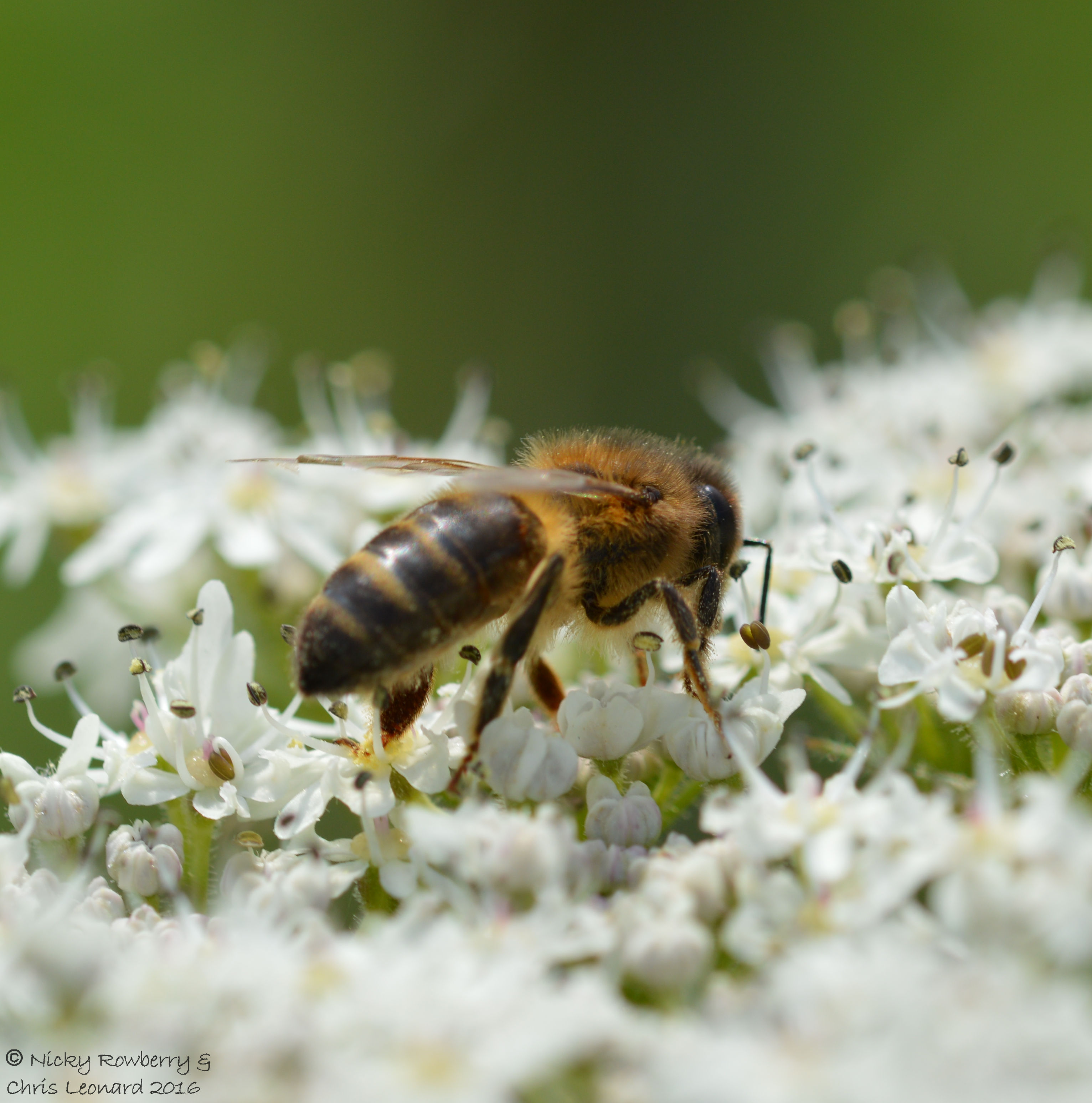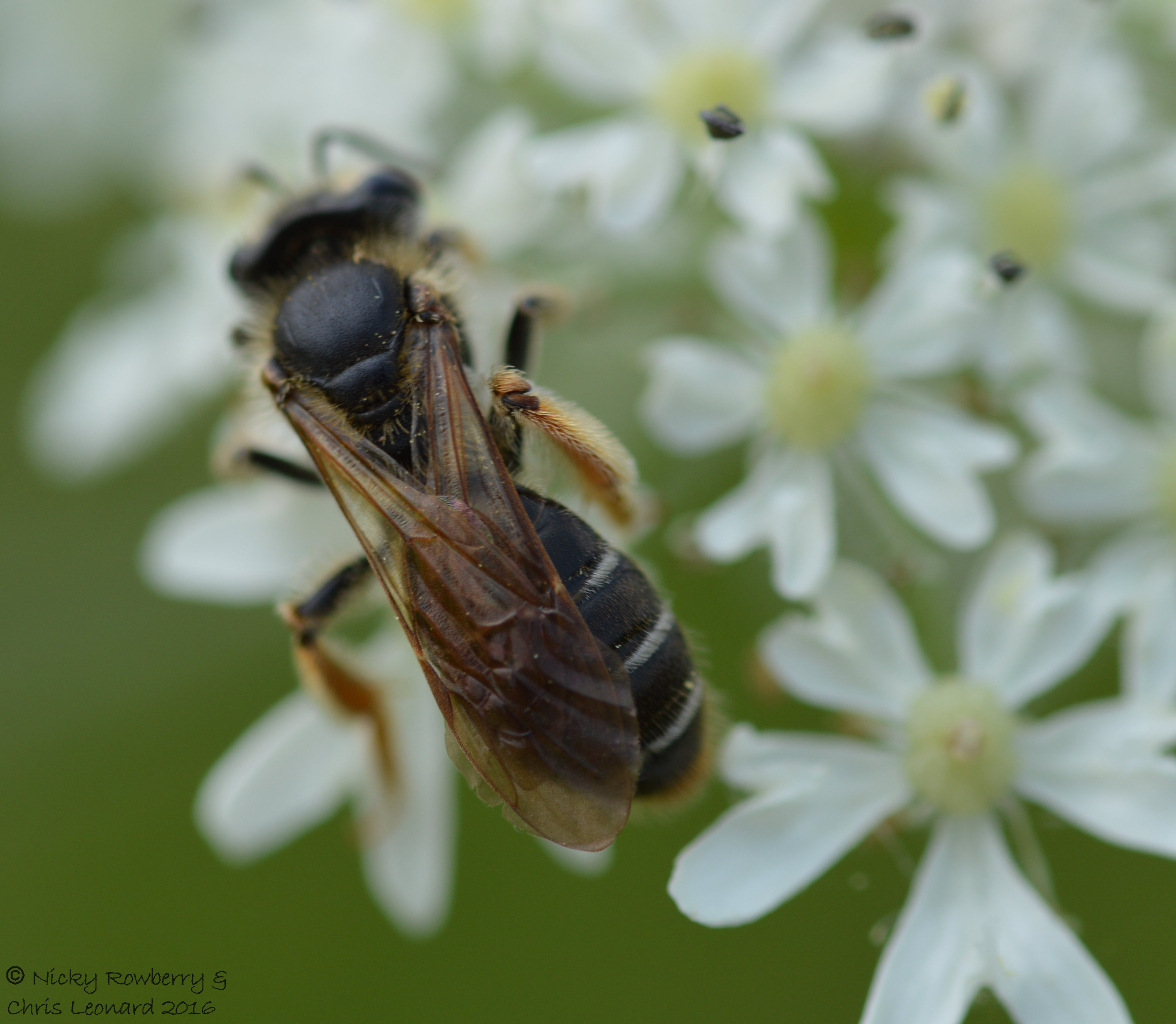 There were bees everywhere and lots of different species – below (I think) are Honey Bee, Buffish Mining Bee, Hawthorn Mining Bee and Ashy Mining Bee. The whole meadow was humming with the sound of bees, although they were drowned out sometimes by the hoverflies!