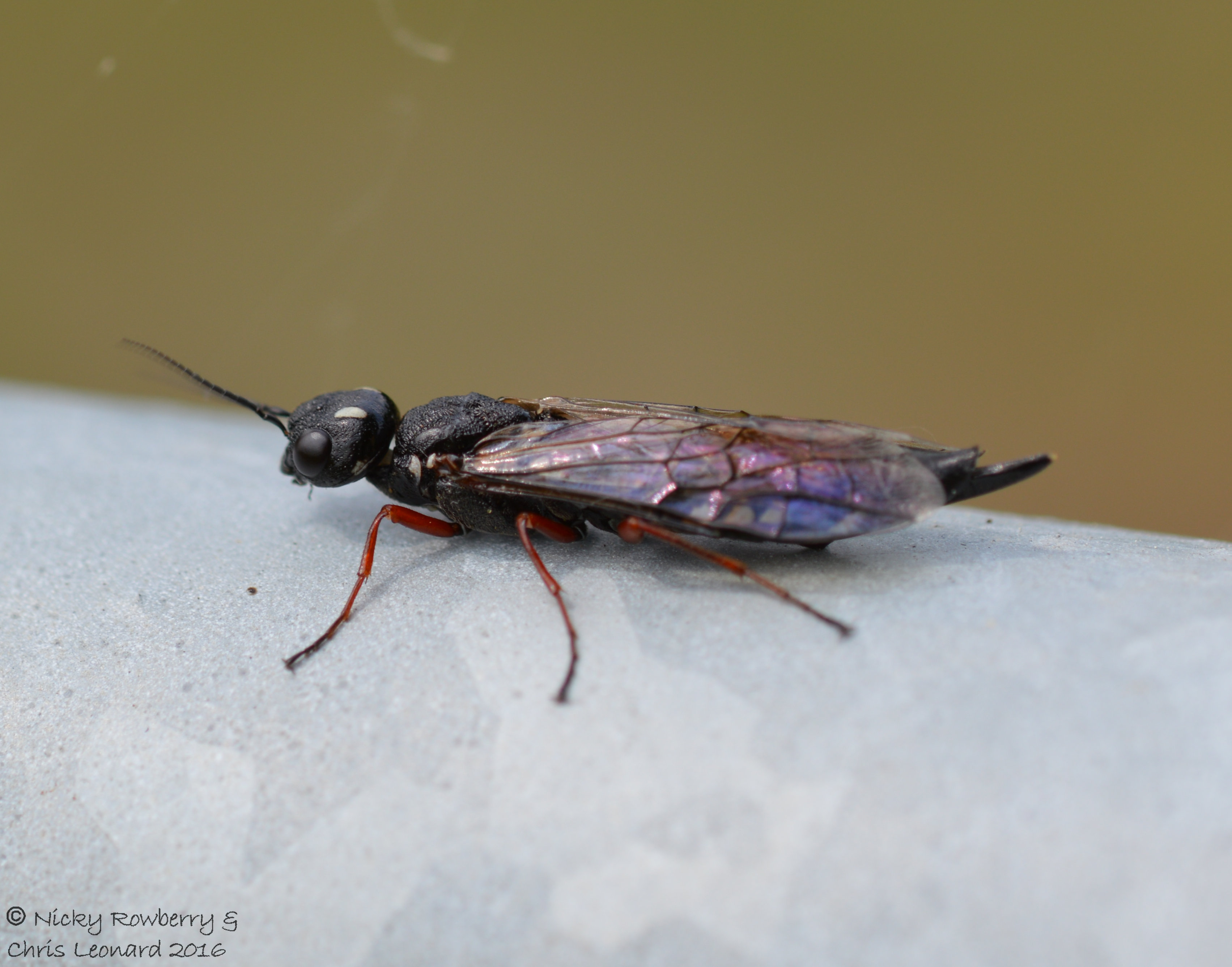 The final two additions to today’s insect selection were a grasshopper (possibly a Meadow one) and some kind of huge sawfly. The sawfly really was a whopper, sitting on the gate, guarding the meadow!