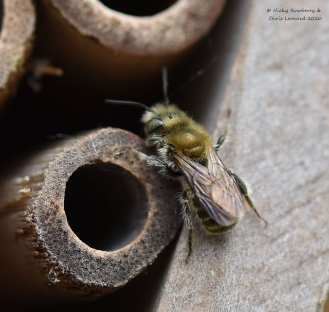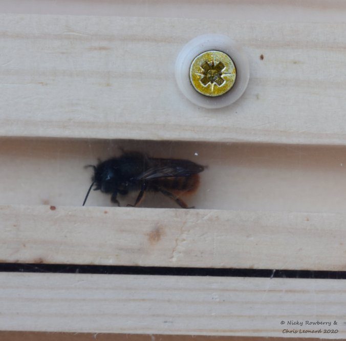 The males tend to emerge first and hang around waiting for the females. Their emergence coincides with the apple blossom, which is always alive with bees of all kinds, including the red masons.