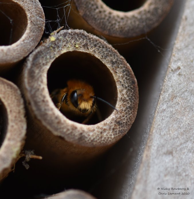 Anyway I’ve finally managed to collate some photos of this year’s red mason bees. I blogged about these bees last year (Bee ‘n’ Bees | Too Lazy To Weed) so this kind of follows on with their story. Last year I’d bought a super-duper new bee hotel with viewing windows. At the end of last summer I was left with a number of the tubes in the hotel filled with red mason bee cocoons, all neatly separated by their little mud walls.